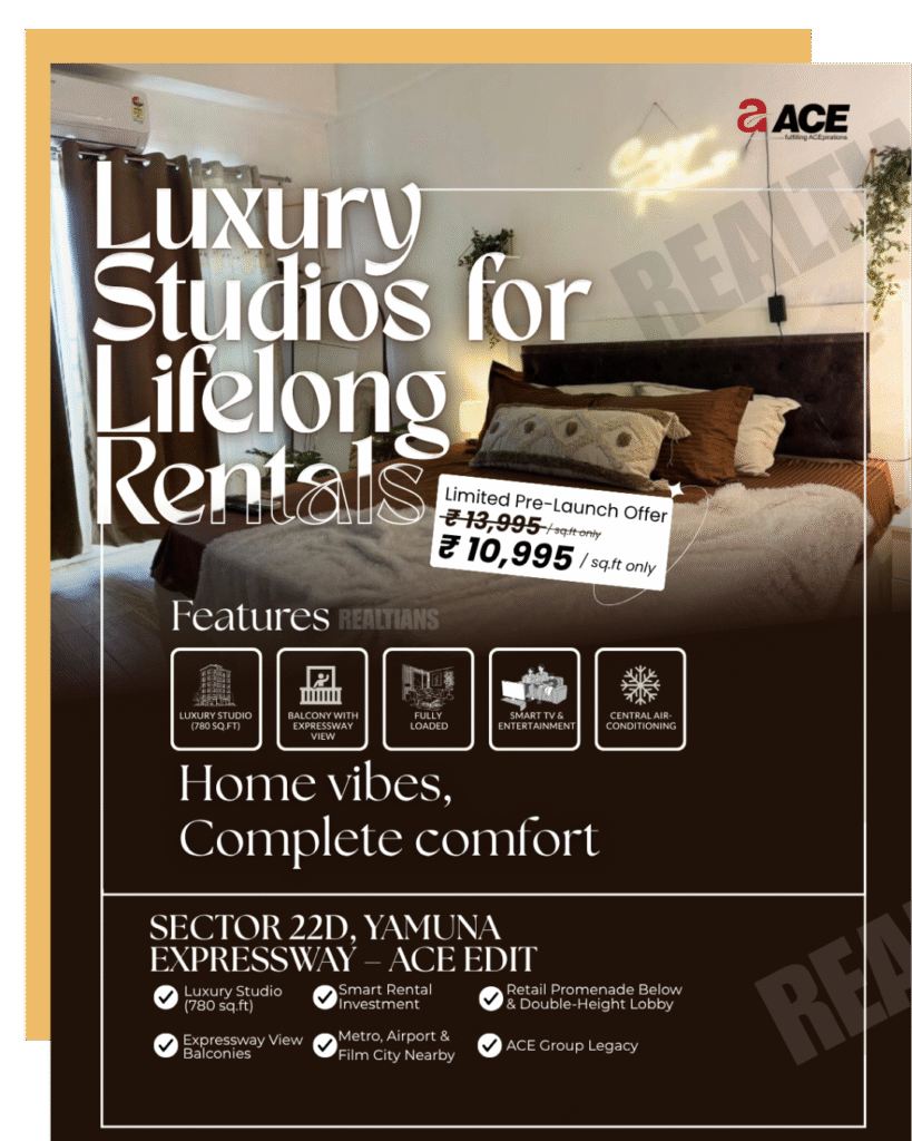 Nestled in the heart of Sector 22D, Yamuna Expressway, ACE Edit introduces a new way to invest and live — luxury studios designed for lifelong rentals.